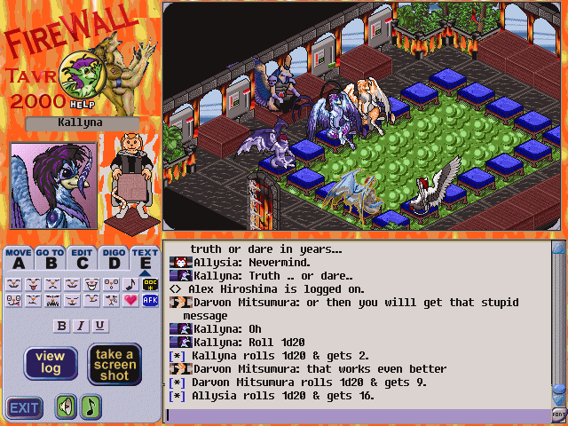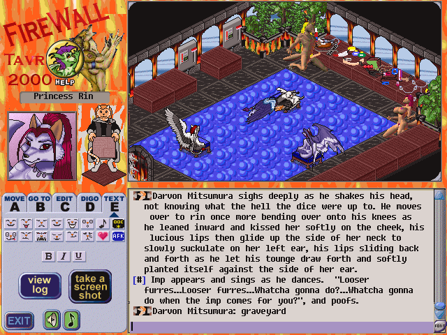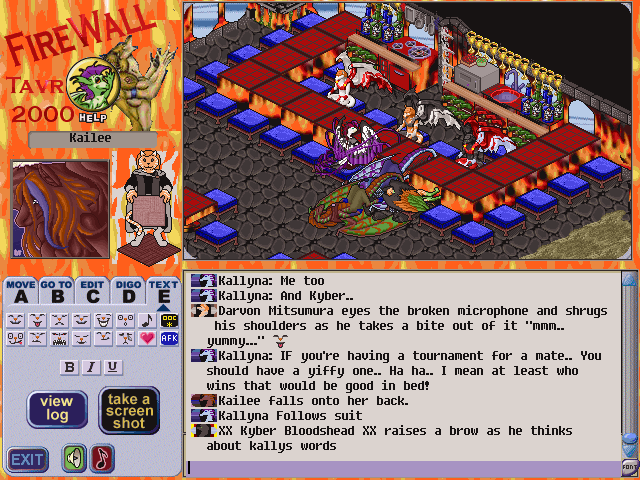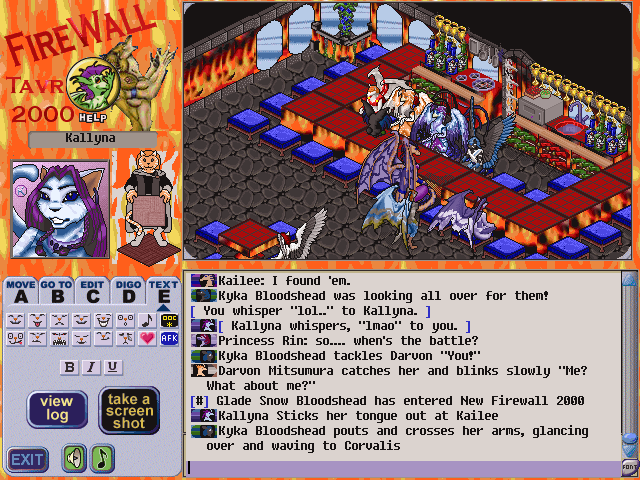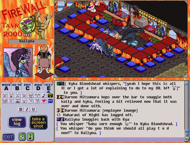 Later on, Kallyna gets me to play a game of Truth or Dare with some of the other firewall staff, and then Pylea Bloodshead shows up and decides to start messing around with our game. So I ended up jailing her and locking the door to keep her out. =D. Thats when she ejected Kallyna and things started getting out of hand. Talk about drama.. (Animated gif)