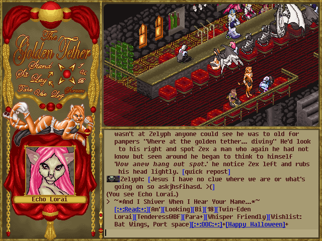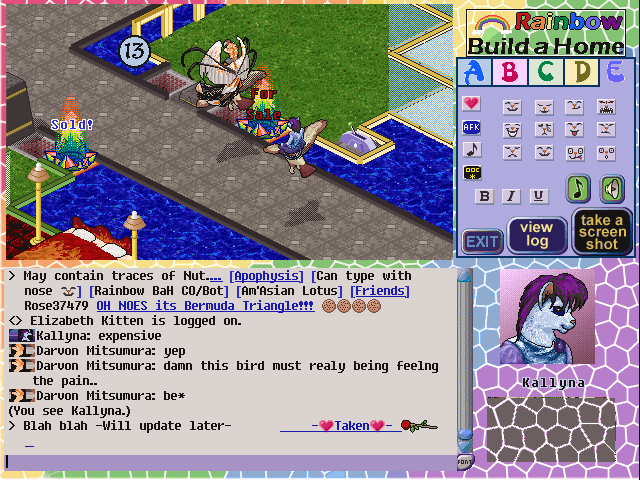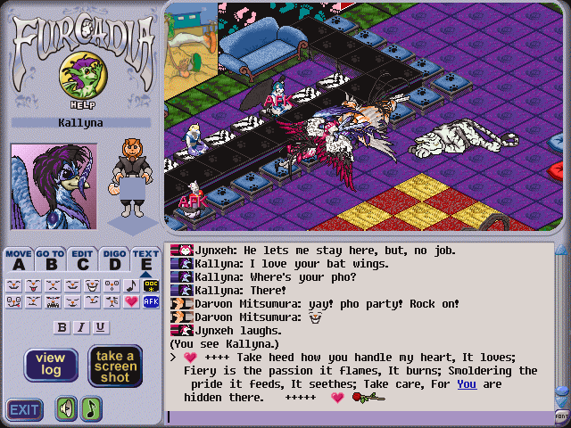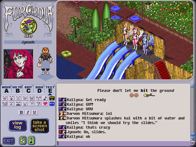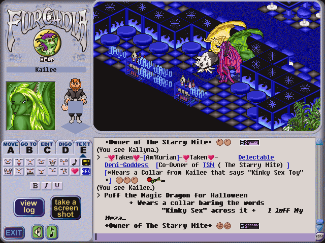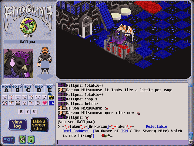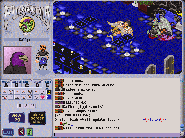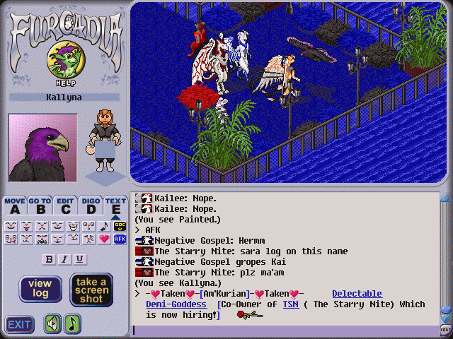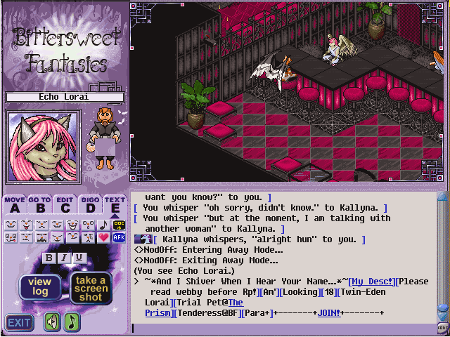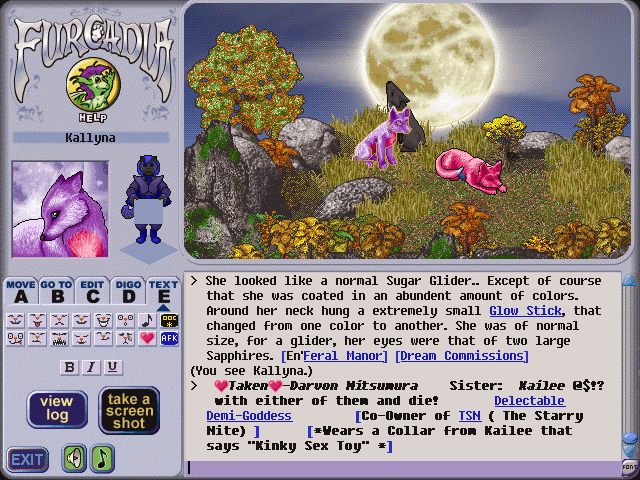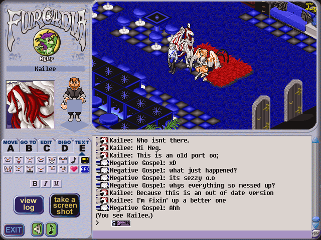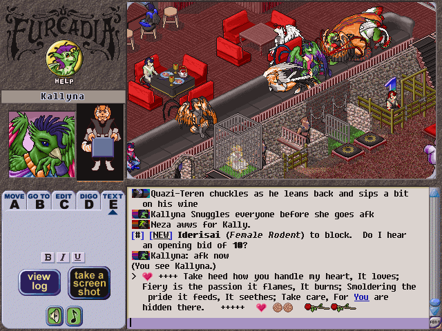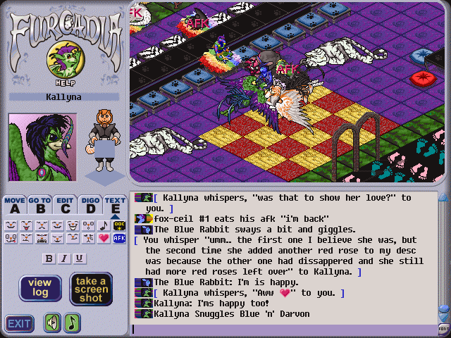 When I was travelling through FurN, I came across another old friend who happened to be on a new alt. She ended up whispering me and saying hi, and then invited me into one of the dreams she had worked at.