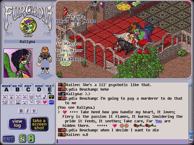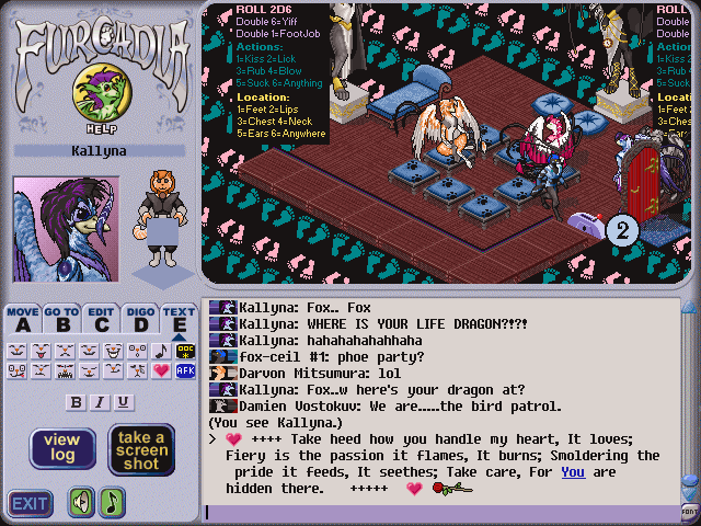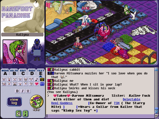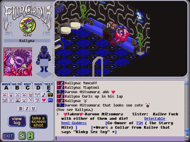 Kally was about to reupload her dream at one time when some furre decided to lie down on the dream spot. That's when Kally got pissed and we moseyed on over there to settle things.