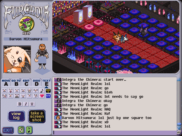 Starlight, Integra, some other friend, and I hung out at The Neonlight realm by having fun and playing games. =D (Animated gif)